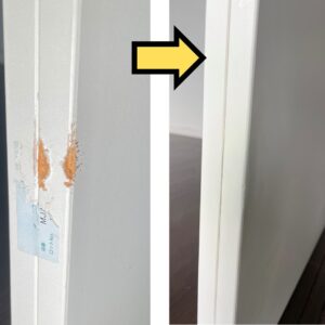 玄関巾木の割れ:パテを充填し塗装